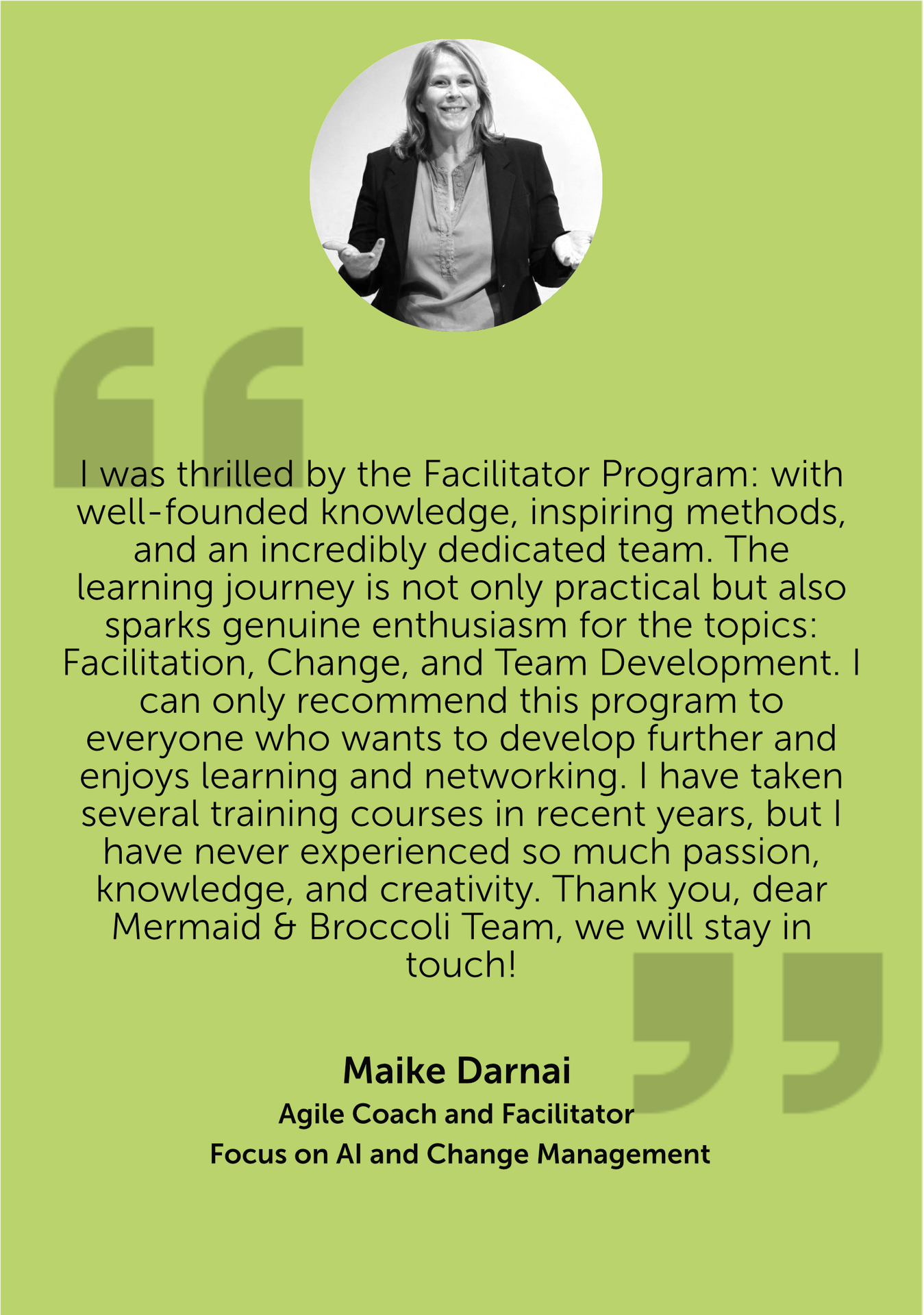 Susanne, one of the founders of mermaid & broccoli: Personal contact for registration for the Facilitator Program and questions for the expert.